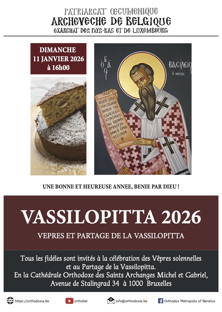 Le Cycle de conférences « Orthodoxos Logos » de l’Archevêché de Belgique, a l’honneur de vous inviter à la Conférence du Protopresbytre du Trône Œcuménique Dr. Stavros Kofinas, le jeudi 18 septembre 2025 à 19:30, qui se tiendra au Centre Orthodoxe Ambiorix (Square Ambiorix 2 – 1000 Bruxelles – Métro Schuman). Le conférencier, Protopresbytre du … Continued