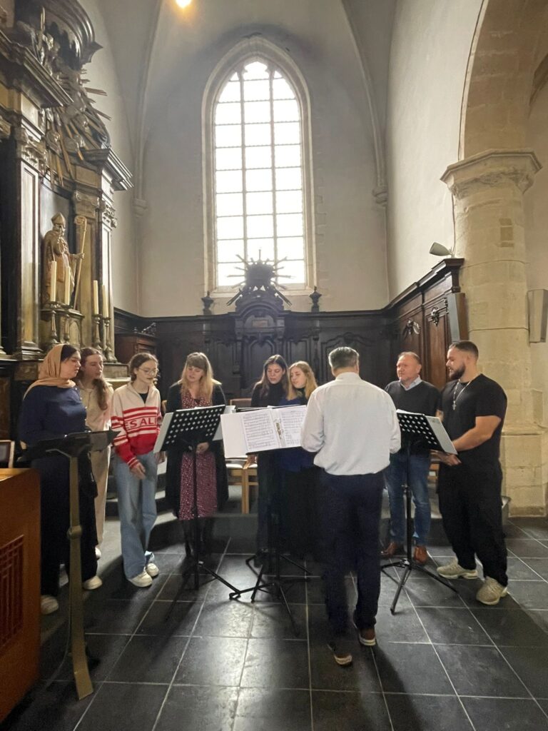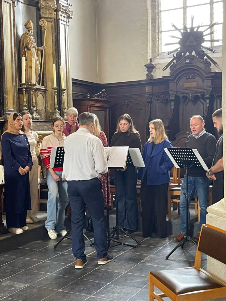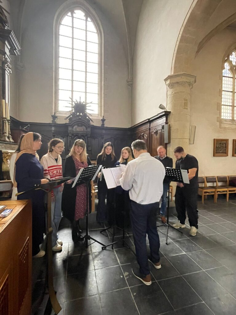 Voor de Metten werd de zang prachtig verzorgd in het Grieks door de zangers van de naburige parochie. De Goddelijke Liturgie werd opgeluisterd door de zangers van de eigen parochie, versterkt met zangers uit diverse Nederlandstalige parochies van Vlaanderen. De uitstekende akoestiek van deze kerk in typische Brabantse gotische stijl versterkte het gevoel van intens gebed en devotie dat er heerste.